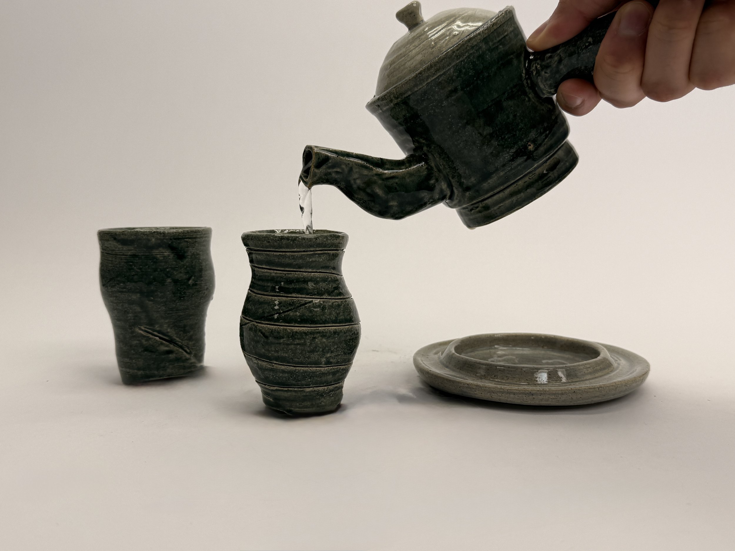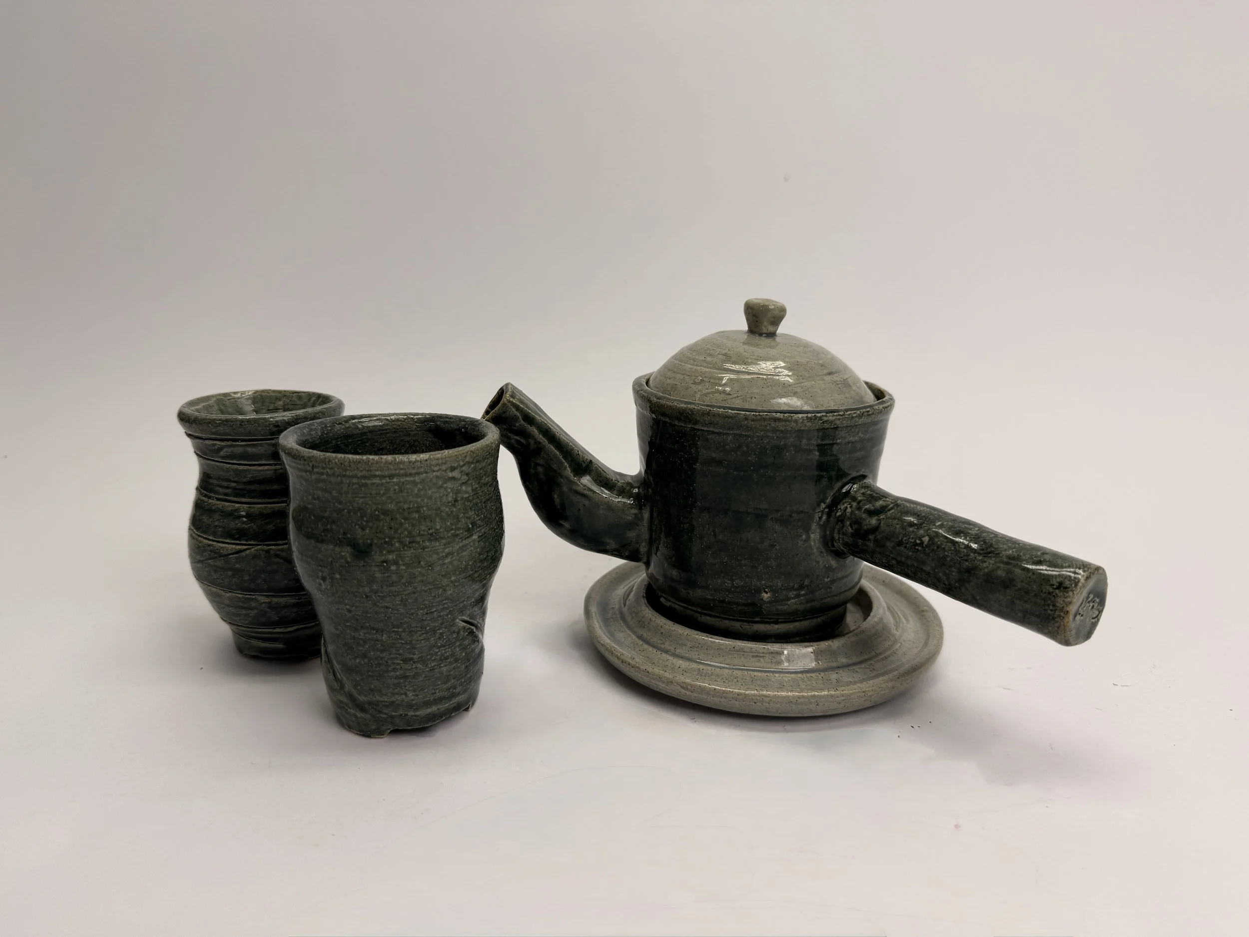 The designs were heavily inspired by traditional small Japanese teapots, I wanted earthy glazes with the spout being inspired by an elephants trunk.