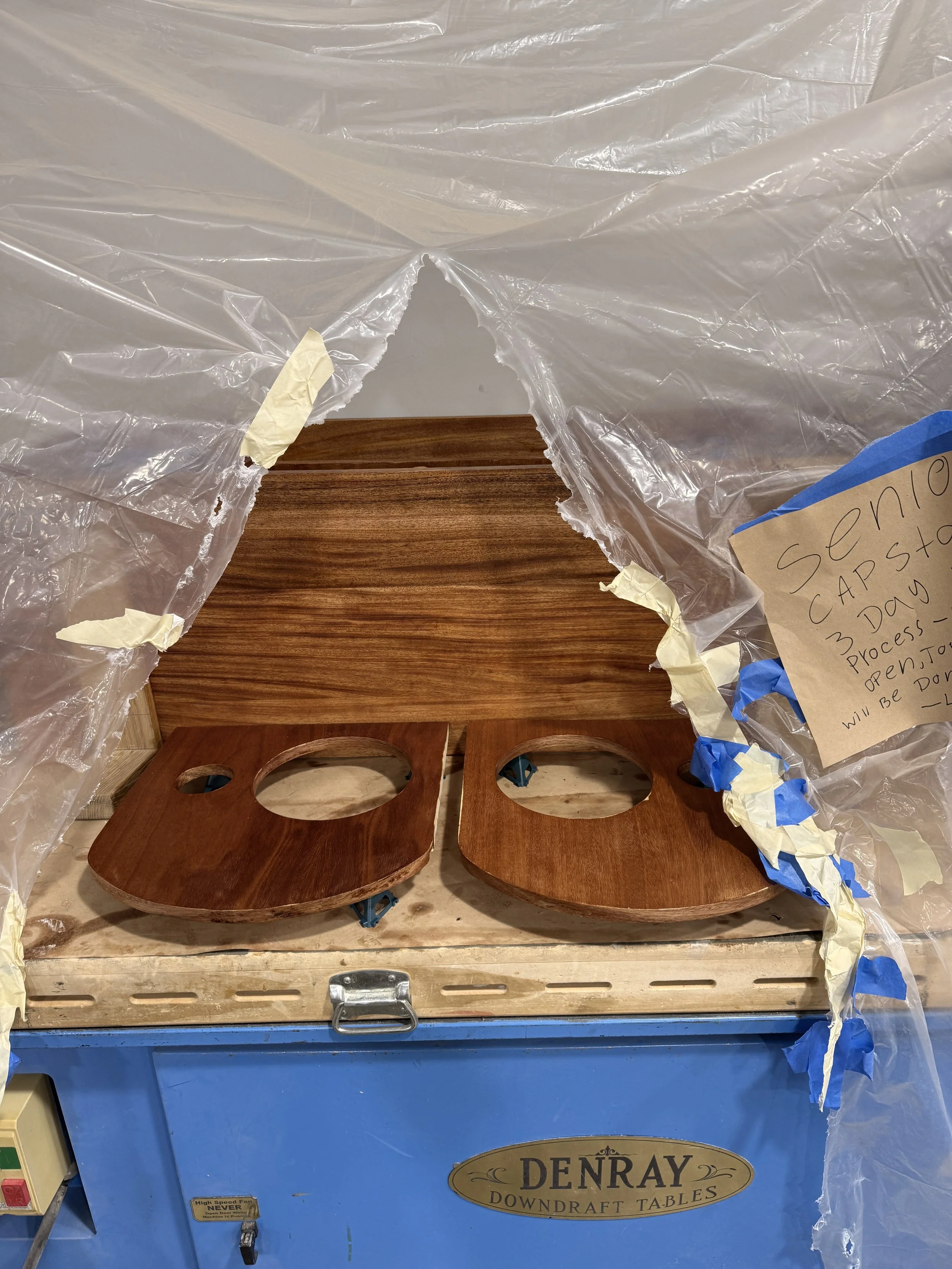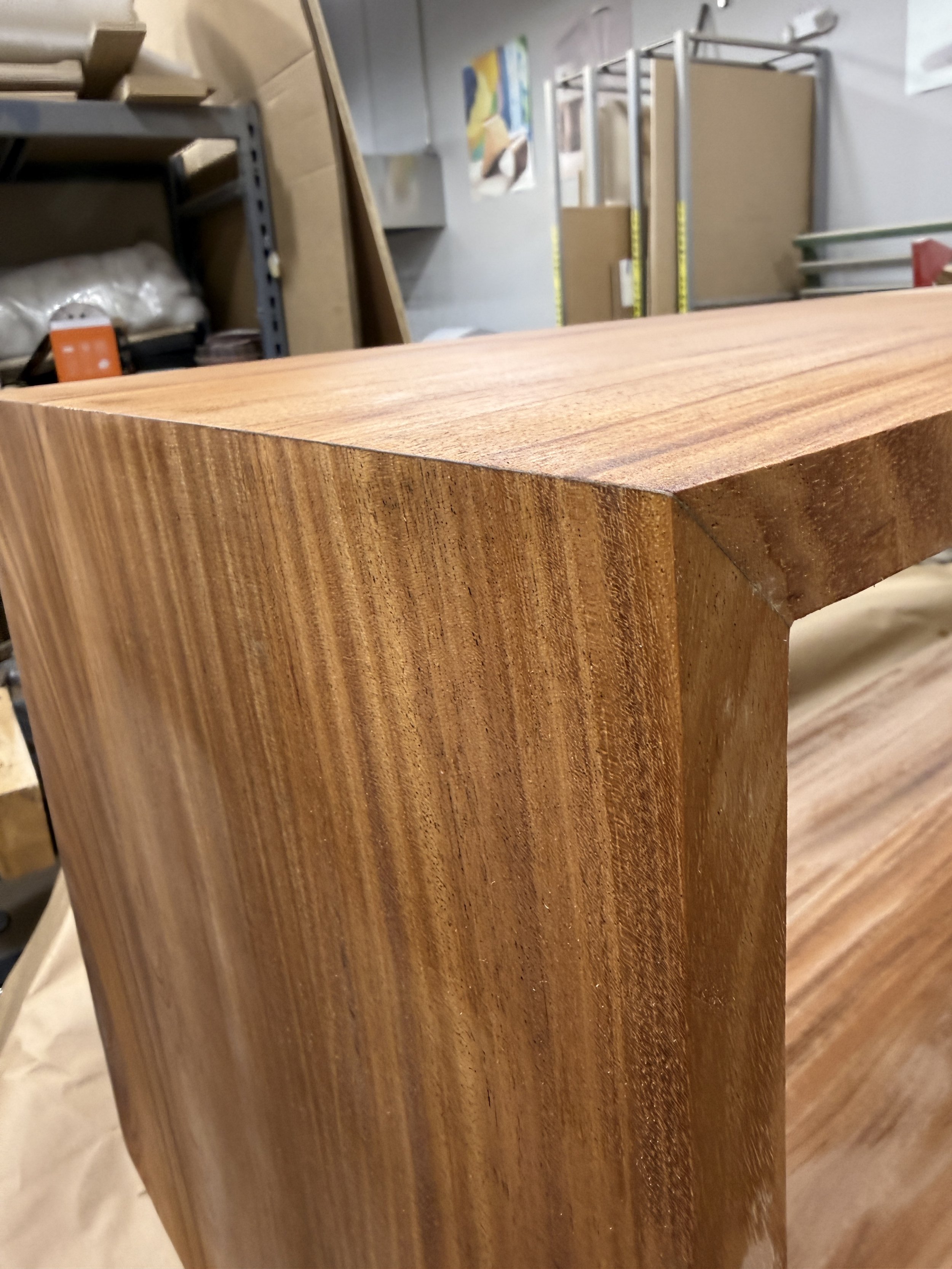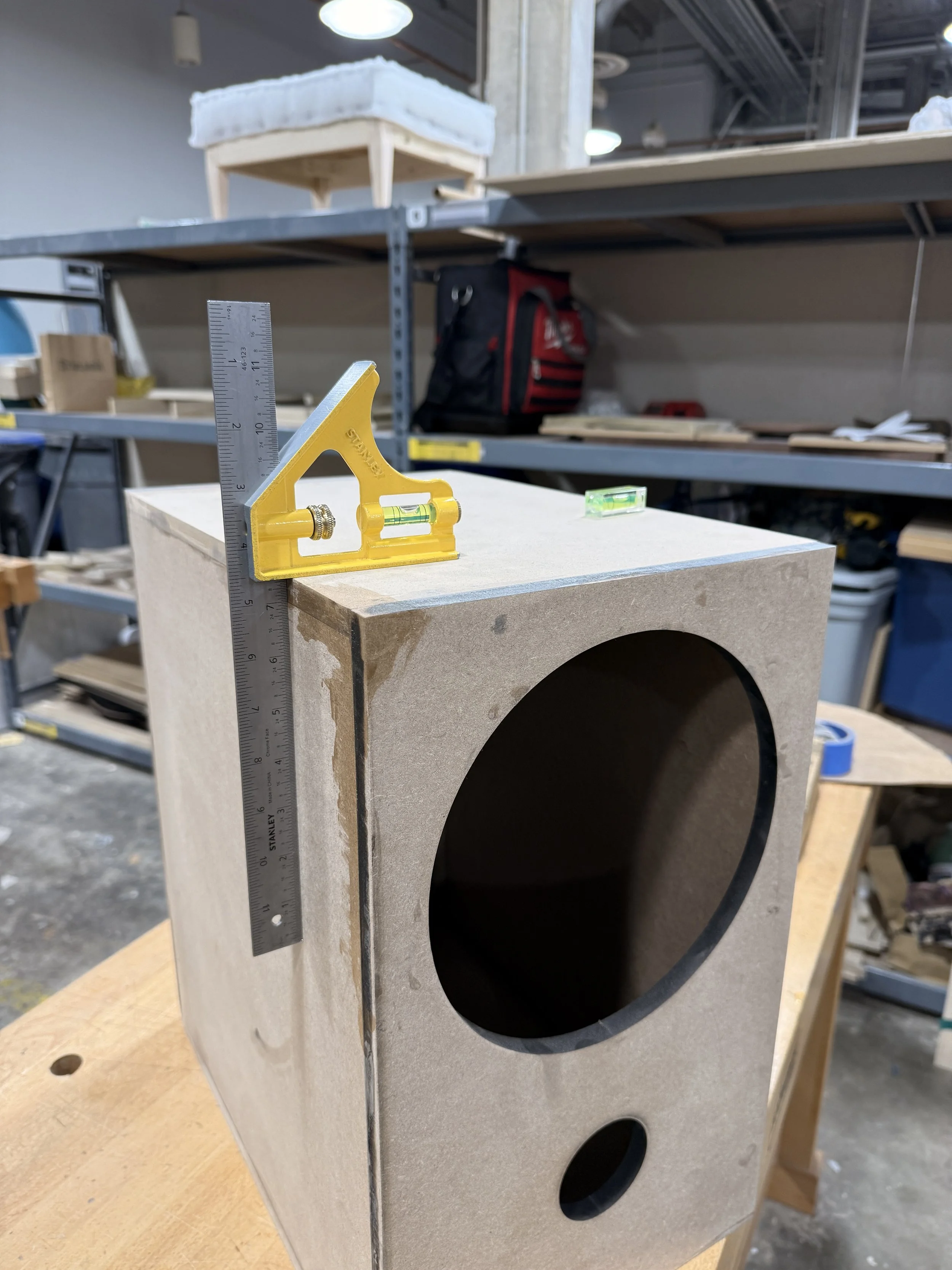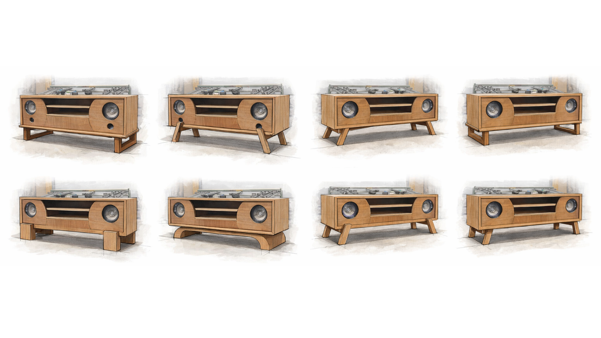 The entire build demanded precision, from ensuring the speaker enclosures were perfectly sized and airtight, to cutting each miter so the waterfall grain could flow seamlessly around the console.
