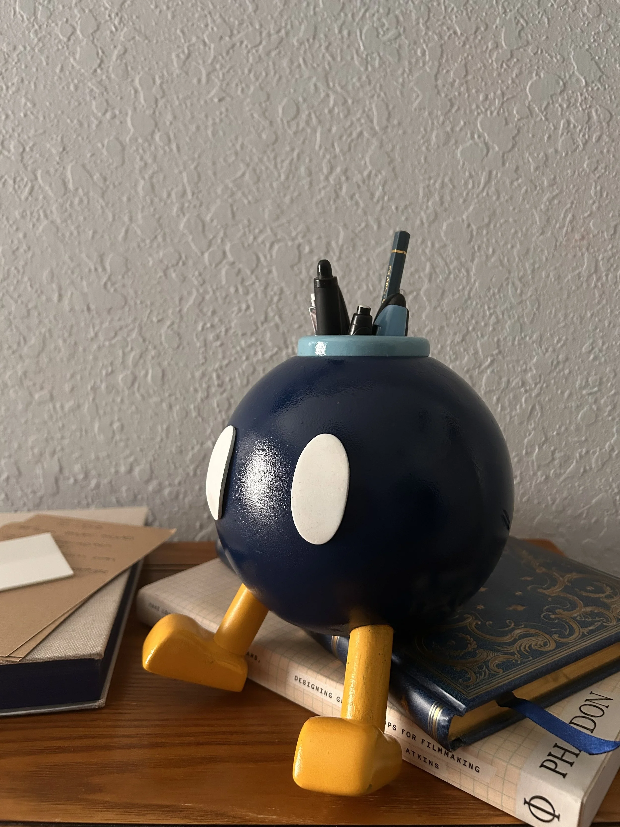 This pen holder was modeled in Rhino3D and was 3D printed and finished by sanding, priming and painting I also did a little wiring to make the inside light up!